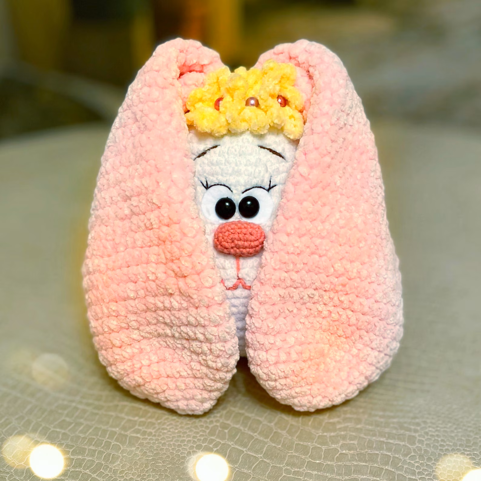 IMPORTANT: since the rabbit is knitted from thick plush yarn, keep in mind that the nose of the toy is crocheted from a semi-cotton, if you crochet the whole toy from a semi-cotton, then the nose will need to be reduced, otherwise it will be very large for the trunk.
